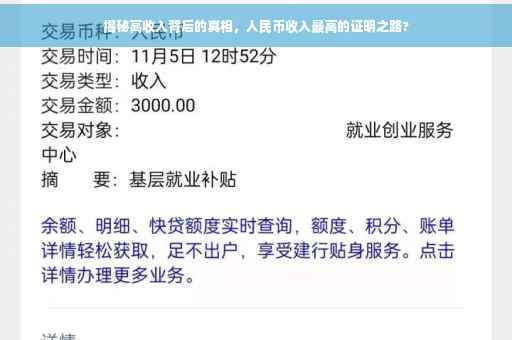 随着经济的发展和社会的进步,越来越多的人开始关注个人收入水平,在这个话题中,我们不禁会想到哪些人群能够获得高收入,以及他们是如何做到的,本文将深入探讨人民币收入最高的证明背后的真相,从多个角度揭示高收入人群的特点和收入来源。