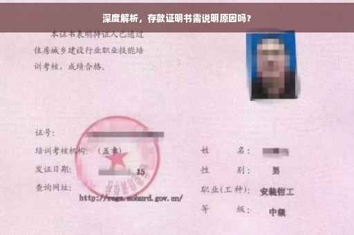 存款证明书是否需要说明原因,一篇文章深度解析。文章指出,存款证明书是一种证明个人或机构存款余额的凭证,通常用于贷款、担保等金融交易场景。在开具存款证明书时,是否需要说明原因取决于具体情境和要求。如果是用于金融交易,建议说明使用目的,以便银行或其他金融机构更好地了解您的需求和风险。文章还探讨了存款证明书的具体用途、办理流程、注意事项等相关内容。