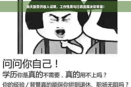 对于许多人来说,收入证明是办理贷款、信用卡、签证等手续的重要文件之一,由于各种原因,我们可能需要临时提供收入证明,这就涉及到一个问题:当天能否开出收入证明?本文将详细解析这个问题,并探讨与之相关的工作性质和行政流程等因素。
