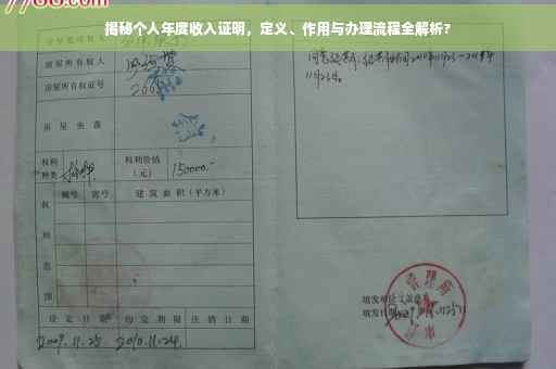 摘要:本文将为你揭示个人年度收入证明的定义、作用及办理流程。收入证明是一份证明个人收入状况的文件,常用于贷款申请、房屋租赁等场合。本文将详细介绍其定义和作用,并简要说明办理流程,包括选择正确的办理途径、准备相关证件和填写申请表格等步骤。了解这些内容,将有助于你更好地理解和利用个人年度收入证明。