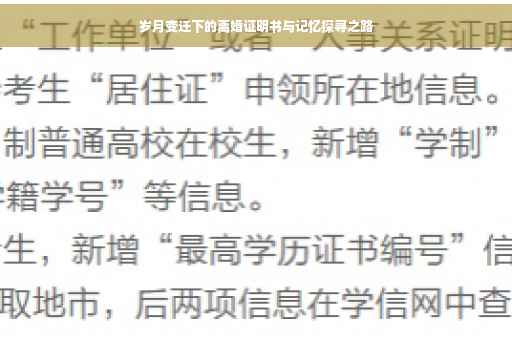 《离婚证明书:探寻岁月之前的记忆与变迁》这篇文章带您走进历史的长河,感受时代的变迁和人们的情感波折,希望通过本文的阐述,能够引发大家对婚姻问题的深入思考,并为当下的婚姻生活提供有益的启示。