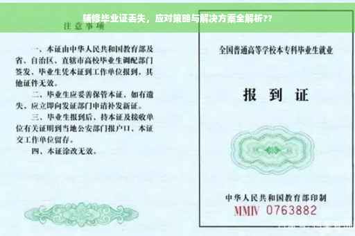 摘要:面对辅修毕业证丢失的问题,不必过于担心。应立即向所在学校的相关部门报告丢失情况,并请求学校出具证明文件,证明毕业证书确实已经颁发。可以通过学校官网或教育部门网站查询并打印相关学历认证报告作为辅助证明。为预防再次遗失,建议备份毕业证复印件或电子档。通过及时报告、获取证明文件以及备份措施,可以有效解决辅修毕业证丢失的问题。