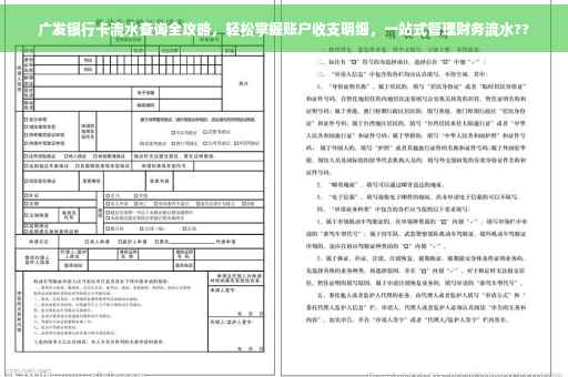 在现代社会,银行卡已成为我们日常生活中不可或缺的支付工具,为了更好地管理个人财务,了解银行卡的流水记录显得尤为重要,本文将详细介绍广发银行卡流水查询的方法、途径和注意事项,帮助持卡人轻松掌握账户收支明细。