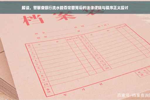摘要:关于警察查银行流水能否定罪的问题,需解读背后的法律逻辑与程序正义。警察在调查犯罪时,有权依法查询涉案人员的银行流水以搜集证据。但仅凭银行流水不足以定罪,还需其他证据支持。司法实践中,需遵循法定程序,确保个人权益不受侵犯。