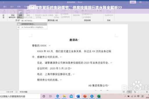 随着房价的不断上涨,按揭贷款购房已成为越来越多人的选择,在这个过程中,银行流水账作为评估个人还款能力的重要依据之一,起到了至关重要的作用,本文将详细介绍银行流水账的相关知识,帮助读者更好地了解房贷过程中的金融细节。