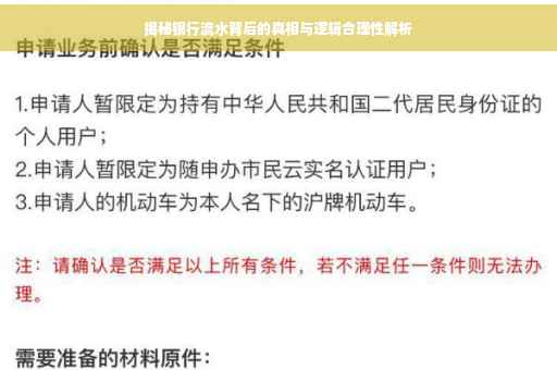 摘要:本文将探讨银行流水的合理性问题,揭示背后隐藏的真相和逻辑。通过深入了解银行流水账单的来源、构成以及真实性验证,帮助公众理解银行流水账单的重要性,并提醒大家在涉及金融交易时保持谨慎态度,确保个人财产安全。本文还将介绍如何合理规划和利用银行流水账单,以更好地管理个人财务。