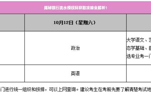 随着互联网金融的快速发展,银行业务逐渐实现电子化、智能化,在进行一些金融业务时,银行流水作为重要的证明材料之一,经常需要提供给相关机构进行核实,而银行流水授权码则是获取银行流水的重要凭证之一,本文将详细介绍银行流水授权码的概念、作用以及如何获取银行流水授权码,以帮助广大读者更好地了解和使用这一功能。
