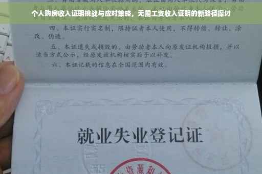 随着房价不断上涨,购房成为许多人生活中的重要事件,在购房过程中,银行和其他金融机构通常要求申请人提供工资收入证明,以评估其还款能力和信用状况,这一要求对于一些特殊人群来说可能带来不小的困扰,特别是那些自由职业者、兼职工作者、创业者以及非传统就业形态的人群,本文将深入探讨个人购房时无法提供工资收入证明所面临的挑战,并提出应对策略。
