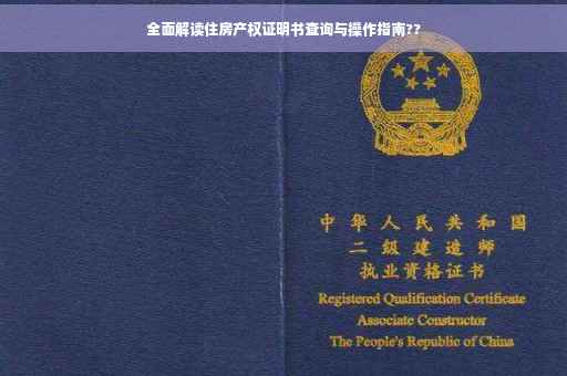 摘要:本文将为您提供关于住房产权证明书查询的全面解读与操作指南。从了解住房产权证明的重要性开始,我们将详细介绍如何查询住房产权证明书,包括查询流程、所需材料以及注意事项等。本文旨在帮助您轻松获取住房产权信息,保障您的合法权益。阅读本文,您将了解如何高效、准确地查询住房产权证明书。