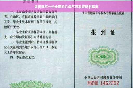 摘要:本指南为你提供如何撰写一份几年不回家证明书的全面步骤。内容包括确定不回家的原因、明确时间段、准备相关证据,如工作证明、学习证明等。指南强调格式规范、语言表达清晰的重要性,并提醒在撰写过程中注意法律合规性。通过本指南,你将能够更轻松地完成一份有效的几年不回家证明书。