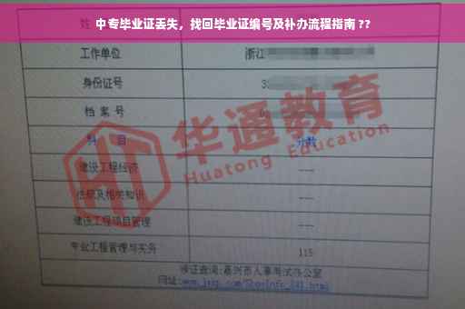摘要:,,关于中专毕业证丢失的问题,可以通过以下流程找回毕业证编号并补办。联系原毕业学校,提供相关个人信息以确认身份。学校会协助查询毕业证编号,并启动补办流程。具体流程包括提交申请材料、填写补办申请表等。补办完成后,将获得新的毕业证书及编号。请注意保管好个人证件,避免再次遗失。