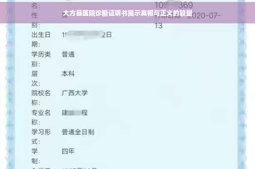 一份大方县医院的诊断证明书在网络上引起了广泛关注,这张诊断证明书不仅关乎一个患者的健康,更牵扯到一系列复杂的社会问题,本文将围绕这份诊断证明书,深入探讨事件背后的真相,并呼吁社会各界共同关注,以正义之名,揭示事实真相。