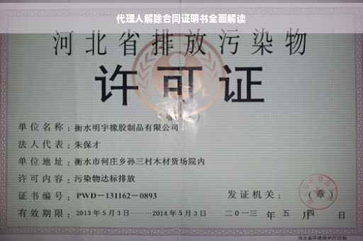 摘要:,,本文将全面解读代理人解除合同证明书。该证明书是代理关系终止的重要文件,涉及到合同解除的原因、时间、双方权责等关键内容。本文将详细介绍其格式、内容和注意事项,帮助读者了解如何正确书写和使用解除合同证明书,确保双方权益得到保障。通过阅读本文,读者可以更好地了解代理合同解除的相关法律知识和实践应用。