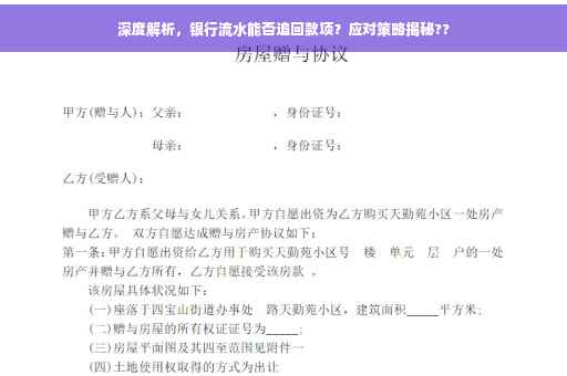 随着金融交易的日益频繁,银行流水作为个人或企业交易记录的关键文件,逐渐在各种场合中发挥着举足轻重的作用,人们最为关心的问题便是:使用银行流水后,还能否追回款项?这个问题涉及法律、金融以及交易安全等多个领域,本文将对此进行深度解析,并给出相应的应对策略。