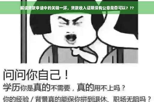 在申请贷款时,收入证明是评估个人信用和还款能力的重要考量因素,部分借款人在提交收入证明时,可能会发现自己的文件缺少公章,没有公章的贷款收入证明是否可行呢?本文将详细解读这一问题,帮助借款人了解相关规定和注意事项。