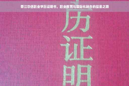 晋江华侨职业学历证明书是由晋江华侨职业学校颁发的重要证明文件,它不仅证明了学生在该校接受职业教育并顺利毕业的学历水平,更体现了职业教育与国际化融合的成果,在全球化进程日益加速的今天,职业教育与国际化融合成为大势所趋,晋江华侨职业学历证明书的出现,具有重要的现实意义和深远的历史意义。