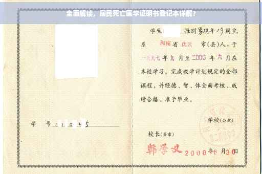 摘要:,,本摘要将全面解读居民死亡医学证明书登记本。该登记本是记录居民死亡医学证明的重要文件,详细记录了死者的基本信息、死亡原因、时间、地点等关键信息。通过对登记本的解读,可以了解居民死亡的原因和趋势,为公共卫生管理和疾病预防控制提供重要依据。该登记本也是法律上认定死亡事实和进行遗产继承等事宜的重要依据。