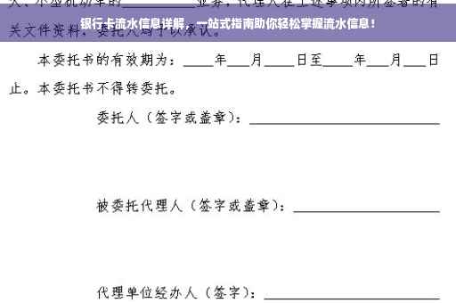 随着电子支付和银行业务的普及,银行卡已经成为我们日常生活中不可或缺的支付工具,在进行各类交易时,我们经常会听到一个名词——银行卡流水信息,银行卡流水信息究竟是什么呢?本文将为您深入解析银行卡流水信息的含义、作用,并介绍如何查询以及需要注意的事项。
