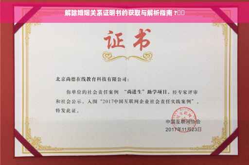 是解除婚姻关系证明书的全面解析与获取指南,如果您对此类问题还有疑问,建议咨询专业律师或相关部门,以获取更加准确的信息。