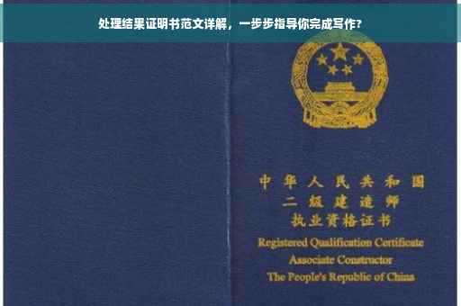摘要:本篇文章主要介绍了处理结果证明书如何撰写,提供了详细的范文作为参考。文章详细阐述了处理结果证明书的基本格式、内容要点以及写作注意事项,帮助读者了解如何正确书写证明书,确保信息的准确性和完整性。通过本文,读者可以了解到证明书的规范书写方式,以便在实际应用中正确有效地使用。