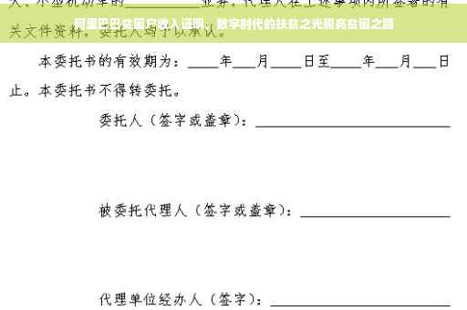 随着数字经济的快速发展,阿里巴巴作为中国领先的电商平台,一直在积极承担社会责任,助力国家脱贫攻坚战略,本文将深入探讨阿里巴巴在贫困户收入证明方面的创新举措,展示数字时代如何为贫困群体带来希望和机遇。