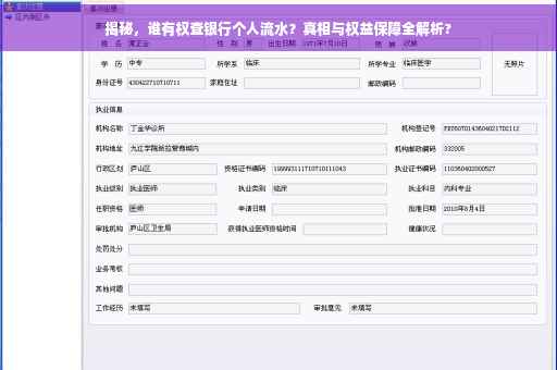 随着金融行业的迅速崛起,银行业务已经与我们的日常生活紧密相连,银行个人流水,作为个人金融交易的重要记录,其关注度日益提高,谁有权查银行个人流水却成为了一个备受争议的话题,本文将围绕这一主题进行深入探讨,旨在为广大读者揭示真相,并保障个人权益。
