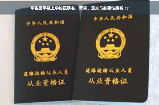 摘要:,,本文旨在阐述学生带手机上学的证明书的重要性及其背景。随着科技的普及,手机已成为现代学生不可或缺的学习工具。学生通过手机获取信息、交流学习,有助于提升学习效率与适应数字化时代的需求。证明书的出现,旨在明确学生合理使用手机的权益,同时保障学校的管理秩序。本文旨在理解这一现象的深层意义与必要性,以推动教育与时俱进,适应信息化社会的发展趋势。