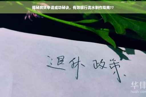 摘要:本文将为你揭示房贷申请成功的秘诀,教你如何制作有效的银行流水。通过合理的规划和管理个人财务,包括提高收入、控制支出和保持良好的信用记录等,可以提高房贷申请的成功率。制作清晰的银行流水记录至关重要,确保记录真实、完整且具备连续性,这将有助于银行评估你的还款能力。遵循这些建议,将增加你成功获得房贷的机会。