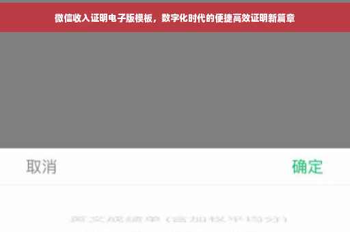 随着互联网的普及和数字化时代的到来,各行各业纷纷拥抱变革,寻求更高效、便捷的工作方式,在这个大背景下,微信收入证明电子版模板应运而生,为广大企业和个人提供了极大的便利,本文将详细介绍微信收入证明电子版模板的相关内容,帮助大家更好地了解和使用这一工具。