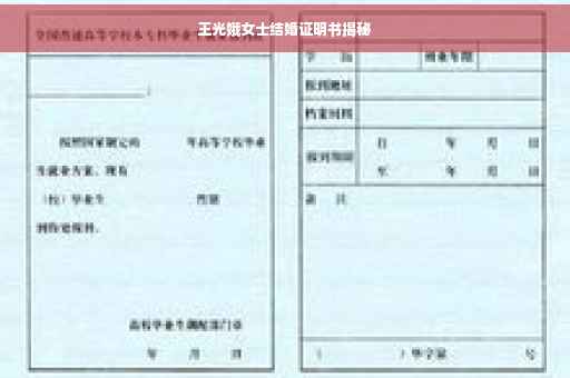 王光娥女士的结婚证明书是一份证明其婚姻状况的重要文件。该证明书详细记录了王光娥女士与其伴侣的结婚信息,包括结婚时间、地点、双方姓名等关键信息。这份证明书的存在可以证明王光娥女士的婚姻关系合法,为其在法律、社会等方面的权益提供了重要保障。