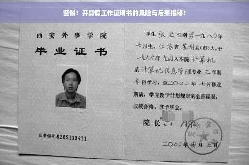 摘要:了解开具假工作证明书的风险与后果至关重要。虚假证明不仅违反职业道德和法律法规,还可能对个人信用和社会信任造成严重影响。一旦被发现,将面临法律制裁、声誉损失和职业生涯受阻等后果。务必保持警惕,遵守相关规定,维护个人诚信和社会公正。