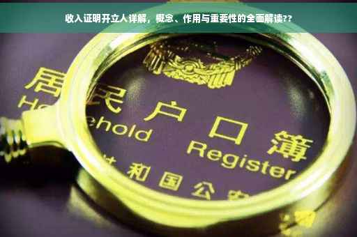 本文旨在帮助读者更好地理解收入证明开立人的概念、作用与重要性,希望通过本文的阐述,读者能够更好地认识这一角色,并在实际生活中加以应用。