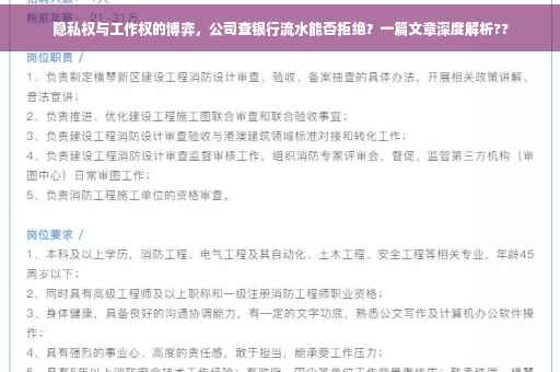 随着企业发展和管理的多元化需求,部分公司开始要求员工提供银行流水作为入职、晋升或审计的一部分,这一做法已经引发了广大公众关于隐私权与工作权的深入讨论,本文将深入探讨公司查银行流水的合理性,以及员工在此过程中的权利与隐私保障。