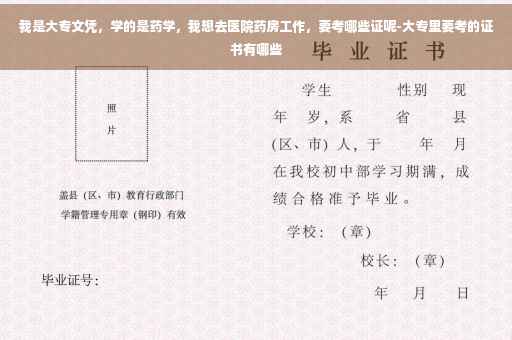 首先毕业证里面的专业要符合报考条件,要先考卫生药士,考到此证后,再根据学历(中专、大专、本科、研究生),确定年限后,再考卫生药师,各省食药监发的药师证(初级、中级)和国家食药监发的执业药师证(中药、西药),在医院药房是不承认的,部分私立医院,不严格的会招,公立的都只认卫生药师!但是证多的话,对工资提升有帮助在部分医院!可是,这行业是饿不死,吃不饱的,请君三思而后行,考证也是很耗生命时间的!