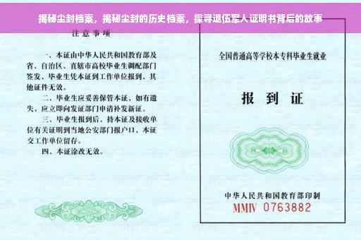 持有退伍军人证明书的人,不仅拥有荣誉的象征,更拥有国家和社会对他们付出的认可,这张证明书背后蕴含着持有人的青春岁月、热血汗水以及对国家的忠诚,随着时间的推移,这些证明书成为了珍贵的历史文物,具有很高的历史价值和研究价值,它们见证了那个特殊时期的历史变迁,也让我们更加深刻地认识到战争的残酷和和平的珍贵。