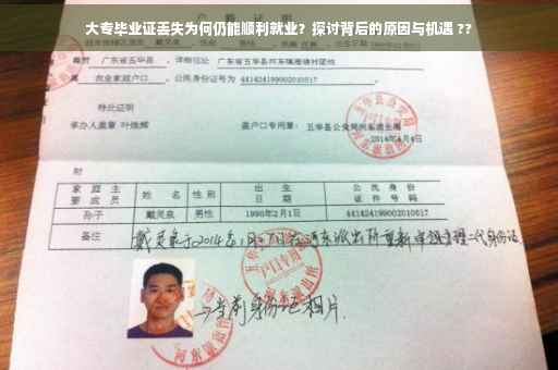 摘要:即使大专毕业证丢失,仍然有机会找到工作。这是因为除了学历证明外,个人的专业技能、工作经验、人际交往能力、职业素养等也是用人单位考虑的重要因素。现代社会的信息化程度较高,多种途径可以证明学历背景,如通过教育背景认证等。即使丢失毕业证,只要具备相关能力和素质,依然能够成功找到工作。