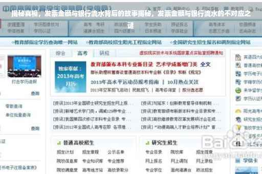 摘要:,,本文揭露了发票金额与银行流水不对应背后的故事。这种现象可能涉及到财务造假、偷税漏税等问题。通过深入调查,揭示了其中的真相,提醒公众和企业要高度重视财务透明度和合规性,避免造成不必要的经济损失和法律风险。也呼吁相关部门加强监管,维护市场秩序和公平竞争。