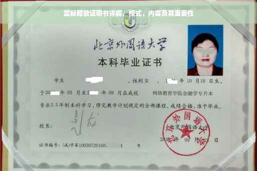 监狱释放证明书是罪犯在刑期结束后获得自由的重要法律文件,这份证明书不仅是罪犯恢复合法身份的象征,也是其重新融入社会的关键凭证,本文将详细介绍监狱释放证明书的格式、内容以及其在现实生活中的应用与重要性。