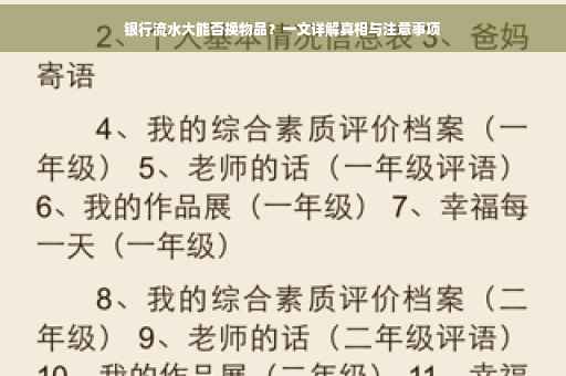 在当今社会,随着金融行业的快速发展,人们对银行业务的了解和需求也日益增长,银行流水作为个人或企业经济活动的重要记录,常常引发各种疑问,关于“银行流水大能否换物品”的问题备受关注,本文将对这一问题进行解析,并介绍相关的注意事项,帮助读者更好地了解银行业务。