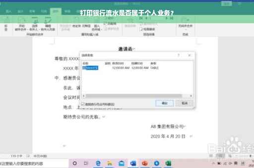打印银行流水是银行业务中的一种服务,客户可以通过银行柜台、自助查询机或网上银行等渠道获取自己的账户流水记录,这些记录反映了客户在一段时间内的交易情况,包括收入、支出、转账等详细信息,从业务性质来看,打印银行流水属于个人业务范畴,因为这项服务是为了满足个人客户查询账户交易记录的需求,涉及的是个人金融信息。