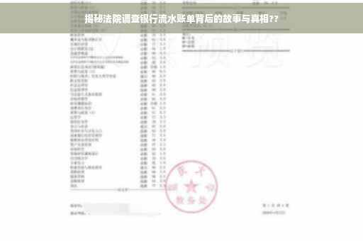 摘要:本文将揭示法院调查银行流水账单图片背后的故事与真相。通过深入调查和分析,将揭示出账单图片背后的种种细节和真相,让读者了解这一过程中的来龙去脉。文章将带你走进这个充满故事的世界,探寻真相的踪迹。