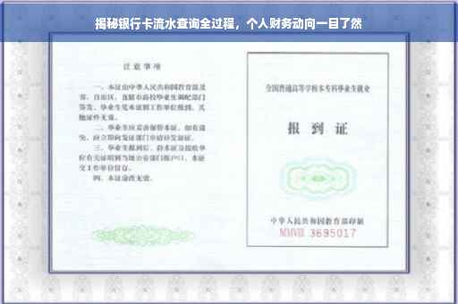 摘要:本文将为您详细揭秘银行卡流水查询的全过程,让您轻松掌握个人财务动向。通过简单的步骤,您可以登录银行官网或手机银行APP,查询账户流水记录,了解账户资金进出情况,有效管理个人财务,确保资金安全。