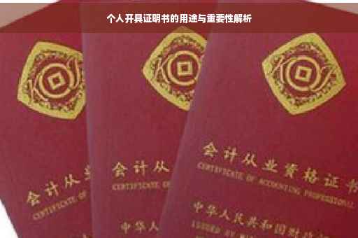 在日常生活中,我们可能会因为各种原因需要开具各种证明,其中个人开具的证明书是一种常见的文件,个人开具的证明书有什么用处呢?本文将对此进行详细解析,帮助大家了解个人开具证明书的价值和作用。