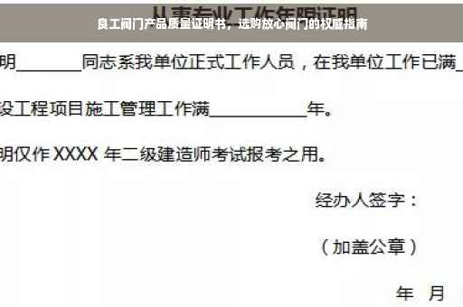 在购买阀门时,了解产品的质量保证和认证是非常重要的,良工阀门产品质量证明书是证明产品质量和性能的重要依据,它包含了产品的详细信息以及生产过程的严格控制等内容,为用户选购放心阀门提供了有力保障。