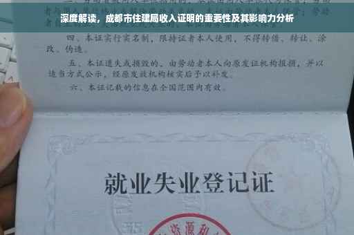 摘要:,,本文将深度解读成都市住建局收入证明的重要性及其影响。收入证明在成都市住建局具有关键性作用,其影响着个人的购房、贷款、社保等方面的政策执行。通过收入证明,成都市住建局能够核实个人的经济状况,确保政策的公平性和可持续性。收入证明对于个人在社会经济活动中的信用度也有着重要的影响,有助于维护社会公平和稳定。