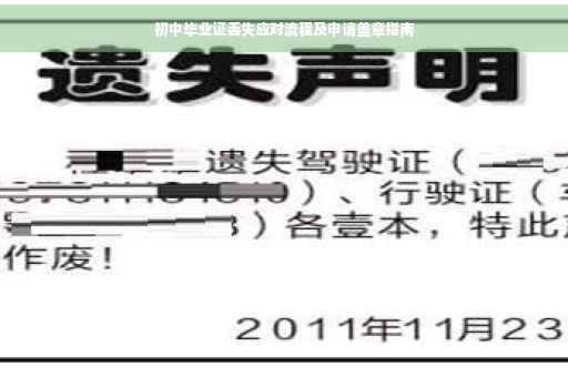 摘要:对于初中毕业证丢失的情况,首先需要前往原毕业学校或相关教育部门进行申请盖章。携带有效身份证件、照片及其他所需证明材料,填写丢失证明申请表格。学校或教育部门会核实个人信息后,进行审批并出具证明。如需要盖章,则提交证明至学校办公室或指定部门,支付相关费用后即可完成盖章。整个流程需保持耐心,并遵循各步骤要求,以确保顺利解决问题。