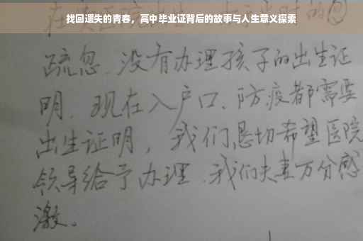 对于许多人而言,高中毕业证是青春岁月中获得的第一个重要证书,它见证了我们从青涩少年到逐渐成熟的转变,也承载了我们在校园中的欢笑与泪水,随着时间的流逝,有些人会发现自己的高中毕业证不翼而飞,当再次提及这个话题时,那份遗憾和失落总会涌上心头。