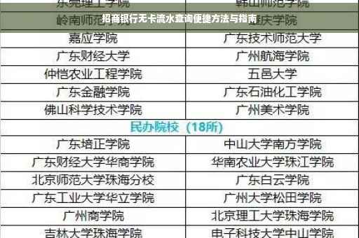 随着科技的飞速发展和金融行业的创新,银行业务已经变得越来越便捷,招商银行作为国内领先的金融机构,始终致力于为客户提供高效、便捷的金融服务,无卡流水查询是许多客户经常需要办理的业务之一,为了满足广大客户的需求,招商银行提供了多种查询无卡流水的方式,本文将详细介绍这些查询方法,帮助广大客户更好地了解和使用招商银行的这项服务。