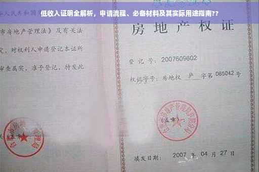 本文通过详细的阐述,介绍了低收入证明的申请流程、所需材料以及实际用途,希望能够帮助到需要申请低收入证明的朋友,在申请和使用低收入证明的过程中,申请人需要确保证明的真实性和有效性,合法合规使用证明,并注意保护个人信息,本文还针对一些常见问题进行了简要解答,以便读者更好地了解和使用低收入证明。