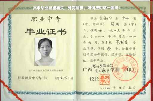 高中毕业证纸丢失,只剩下外壳,面临这一困境,可以采取以下措施应对:联系原高中学校,说明情况并寻求帮助,看是否可以重新出具证明或提供复印件加盖公章。保存好外壳以备不时之需,同时准备好其他相关证明材料,如成绩单等。若学校无法提供有效证明,可考虑通过法律途径解决。应保持冷静,积极寻求解决方案。